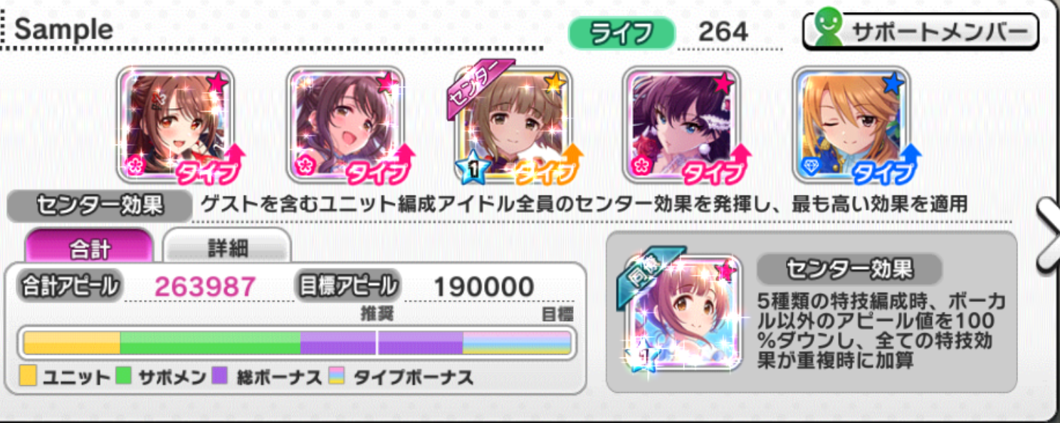ただし全タイプ楽曲で起用するため、スパイクの発動条件である3タイプを編成できるよう属性を合わせること。