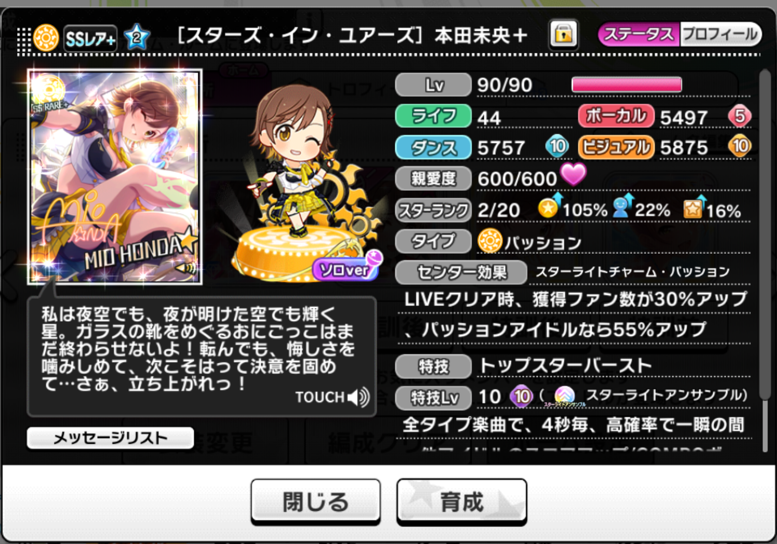 LIVEクリア時、獲得ファンが30%UP。パッションアイドルならさらに25%UP(55%UPになる)。